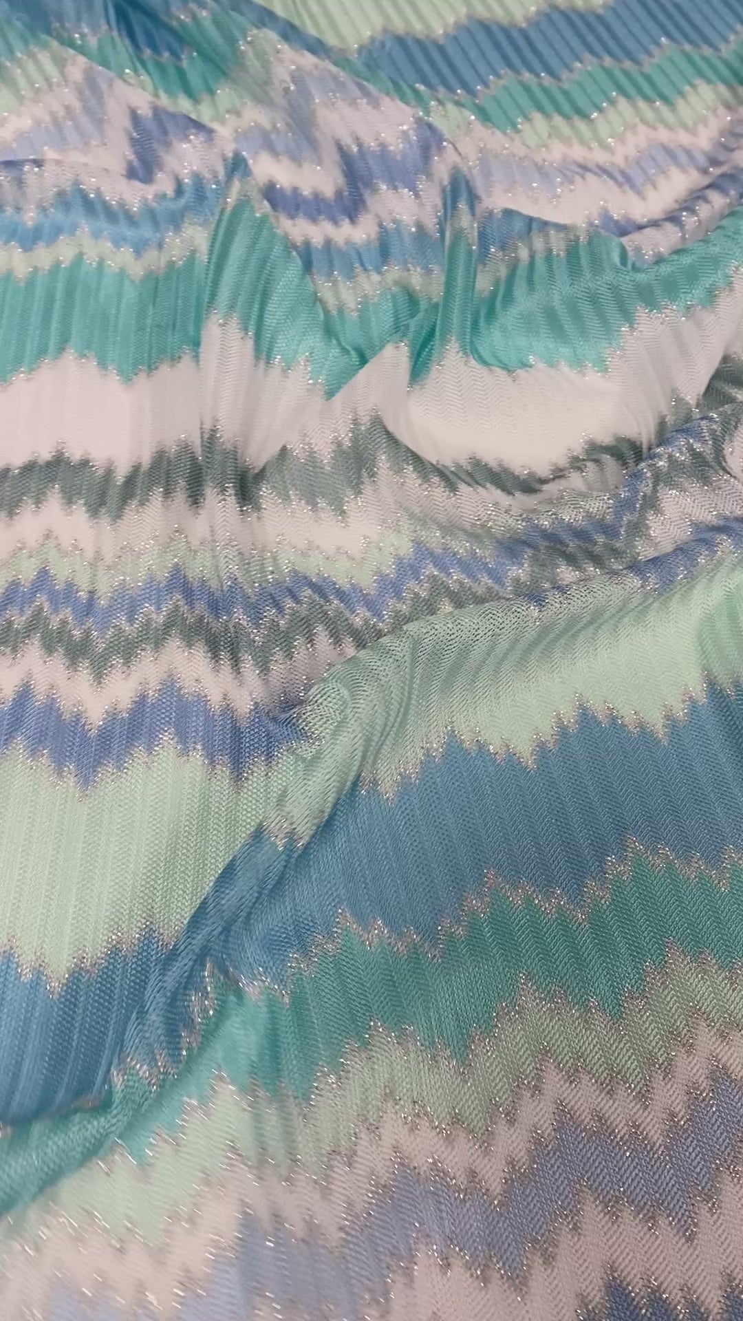 Aqua Blue and Mint Green Zigzag Pattern Woven Fabric