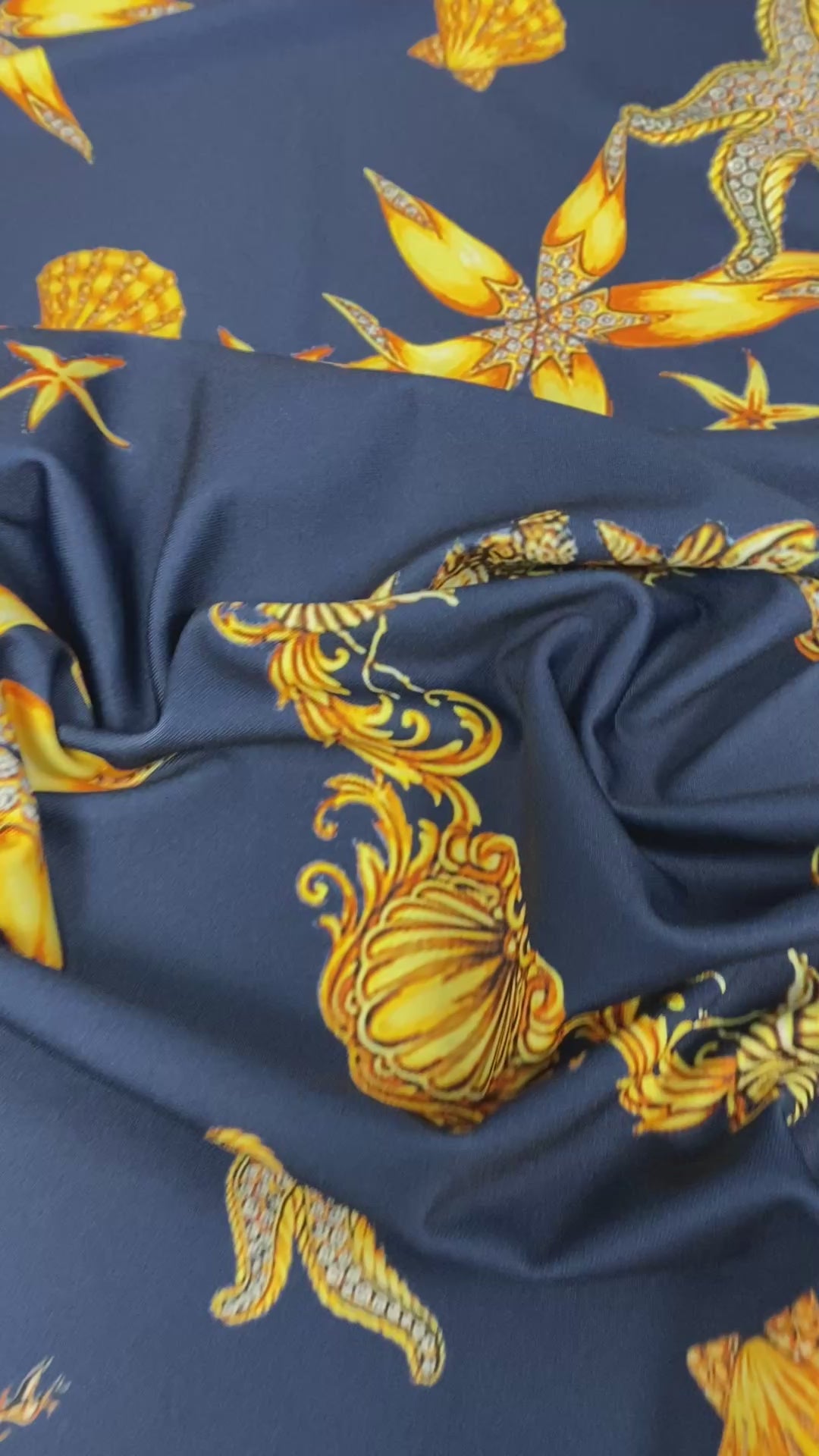 Discover our Navy Blue Sea Shell Pattern Luxury Fabric, perfect for adding a touch of elegance to any project. This high-quality fabric features a beautiful sea shell design on a rich navy blue background. Ideal for upholstery, clothing, or crafts, it combines luxury with versatility. Enjoy the softness and durability of this fabric, making it a great choice for both everyday use and special occasions.