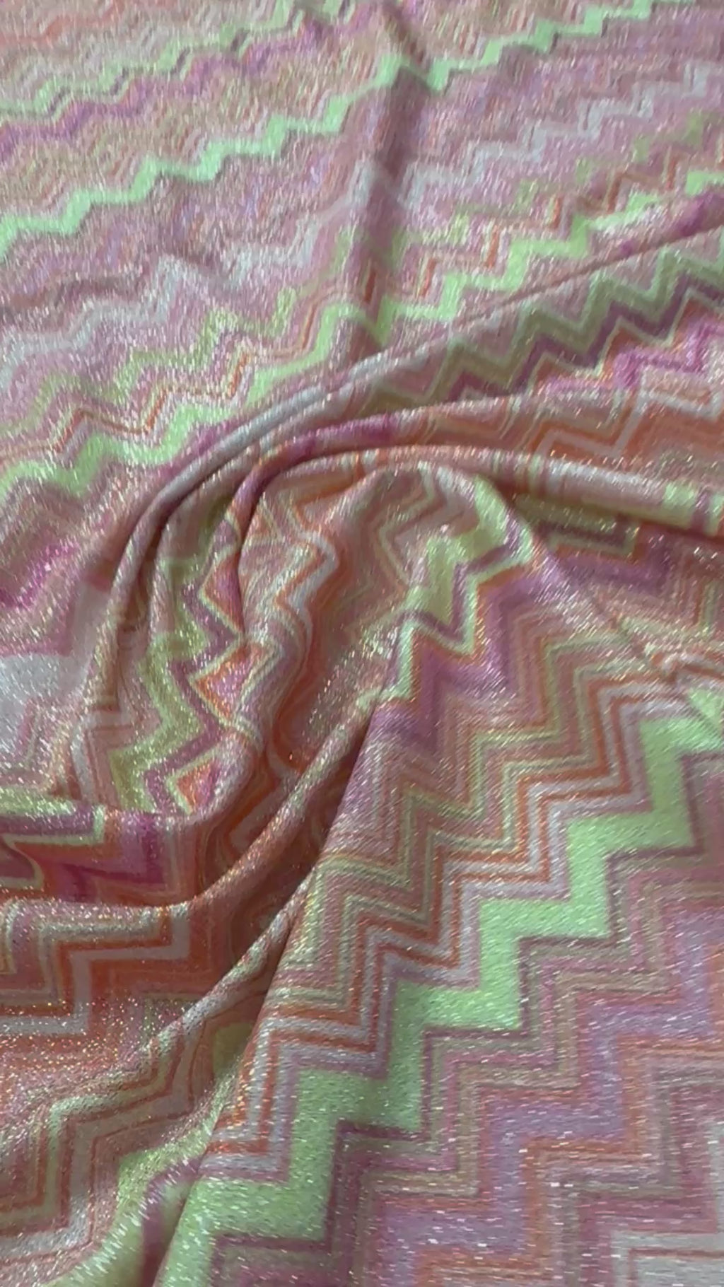 The pink zigzag lurex fabric is a sparkling lurex fabric designed with 4-way stretch fabric that offers exceptional comfort and flexibility for your creative projects. This pink zigzag lurex fabric features shimmering metallic jersey textile woven into a chevron knit material, making it the perfect fabric for dancewear, activewear spandex fabric, and fashion fabric for crafts. Crafted by Whotex Online Fabric Store, this glitter knit fabric combines style and function to elevate your designs. With a generous width of 150 cm, this stretch knit fabric allows you to create garments with ease while ensuring a comfortable fit.
