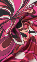 Bold retro wave printed crepe fabric with a smooth, fluid drape. Ideal for statement dresses, skirts, blouses and modern fashion sewing projects. Sold by the metre.