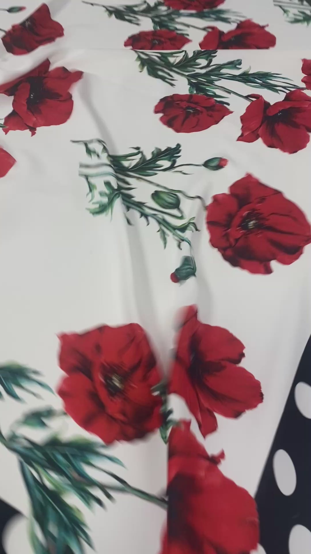 Discover our beautiful red poppy floral fabric with a charming polka dot border. This versatile material is perfect for various crafting projects, home decor, or fashion accessories. Its vibrant floral design combined with the playful polka dot edge adds a delightful touch to any creation. Enjoy the quality and aesthetic appeal of this unique fabric in your next project.