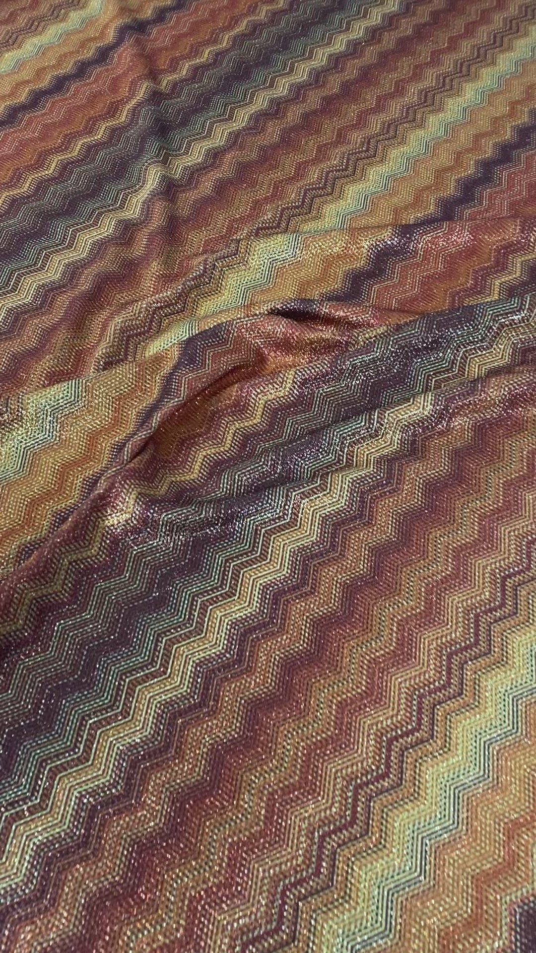 Zigzag Knit Fabric from Whotex Online Fabric Store is a premium polyester knit fabric designed to bring shimmer and style to your projects while delivering exceptional comfort and durability. This stretchy zigzag fabric measures 150 cm (59.04 inches) wide, making it ideal as fabric for activewear, fabric for swimwear, dancewear, and fashion-forward home decor. Featuring a chevron pattern fabric woven with Lurex fabric, this metallic jersey fabric creates a glitter knit textile effect that elevates any garment or decorative piece. Tested for colorfastness and backed by Whotex's quality assurance, this durable fashion fabric maintains vibrant colors and elasticity even after multiple washes. Its anti-allergic fabric composition ensures safety for sensitive skin by using dyes free from carcinogens.