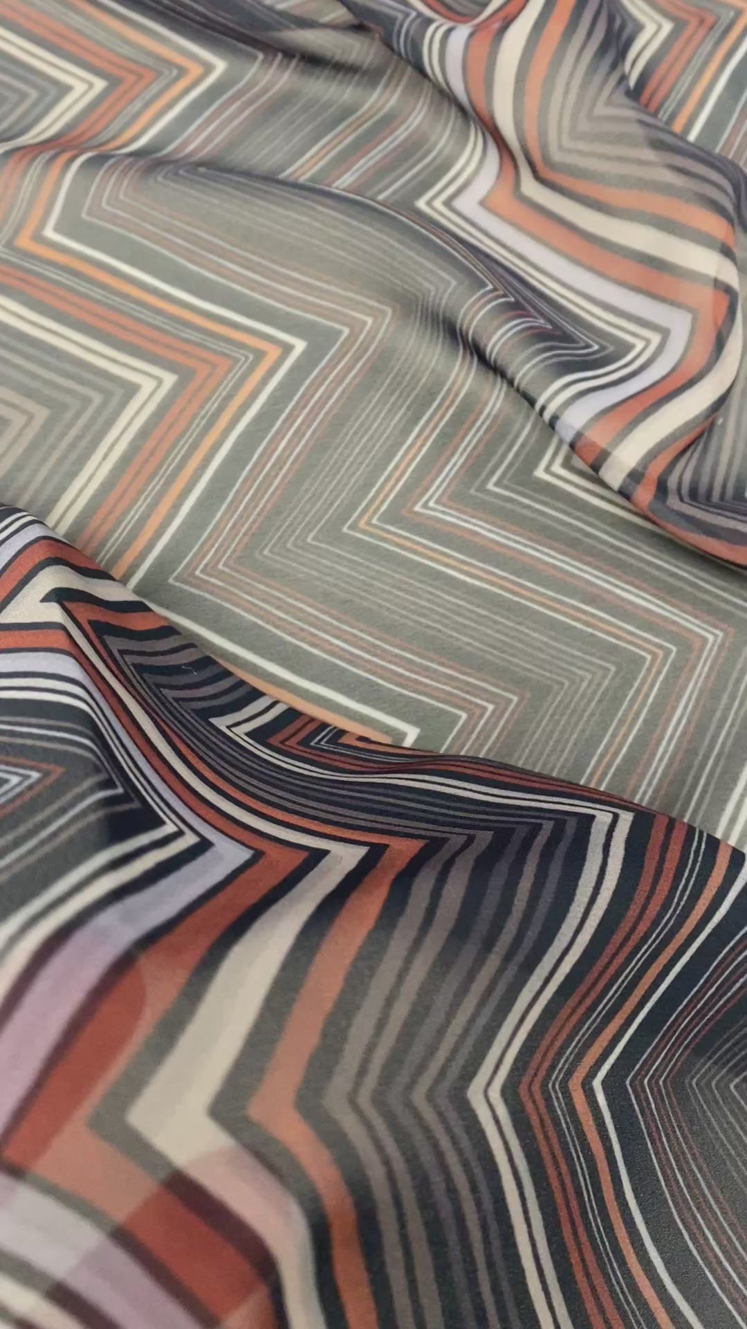 Brown and Beige Chevron Zigzag Pattern Fabric – Fabric by Metre, Options: Satin, Crepe, Spandex, Chiffon