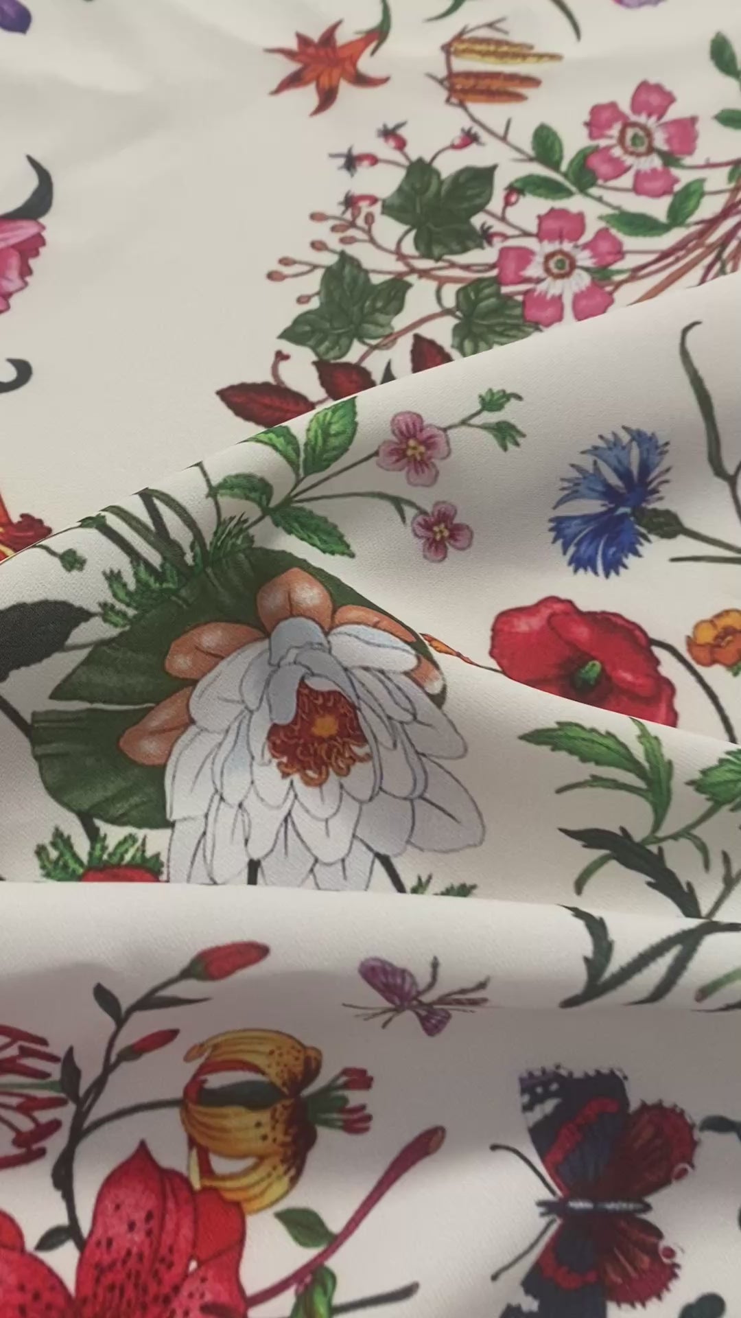 Cream Floral Botanical Print Fabric – Custom Printed Fabric, Choose Material by Metre