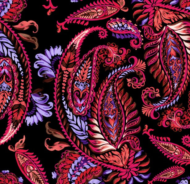 Luxurious paisley fabric with a soft drape and intricate detail. Perfect for dresses, blouses, and home decor. Sold by the metre.
