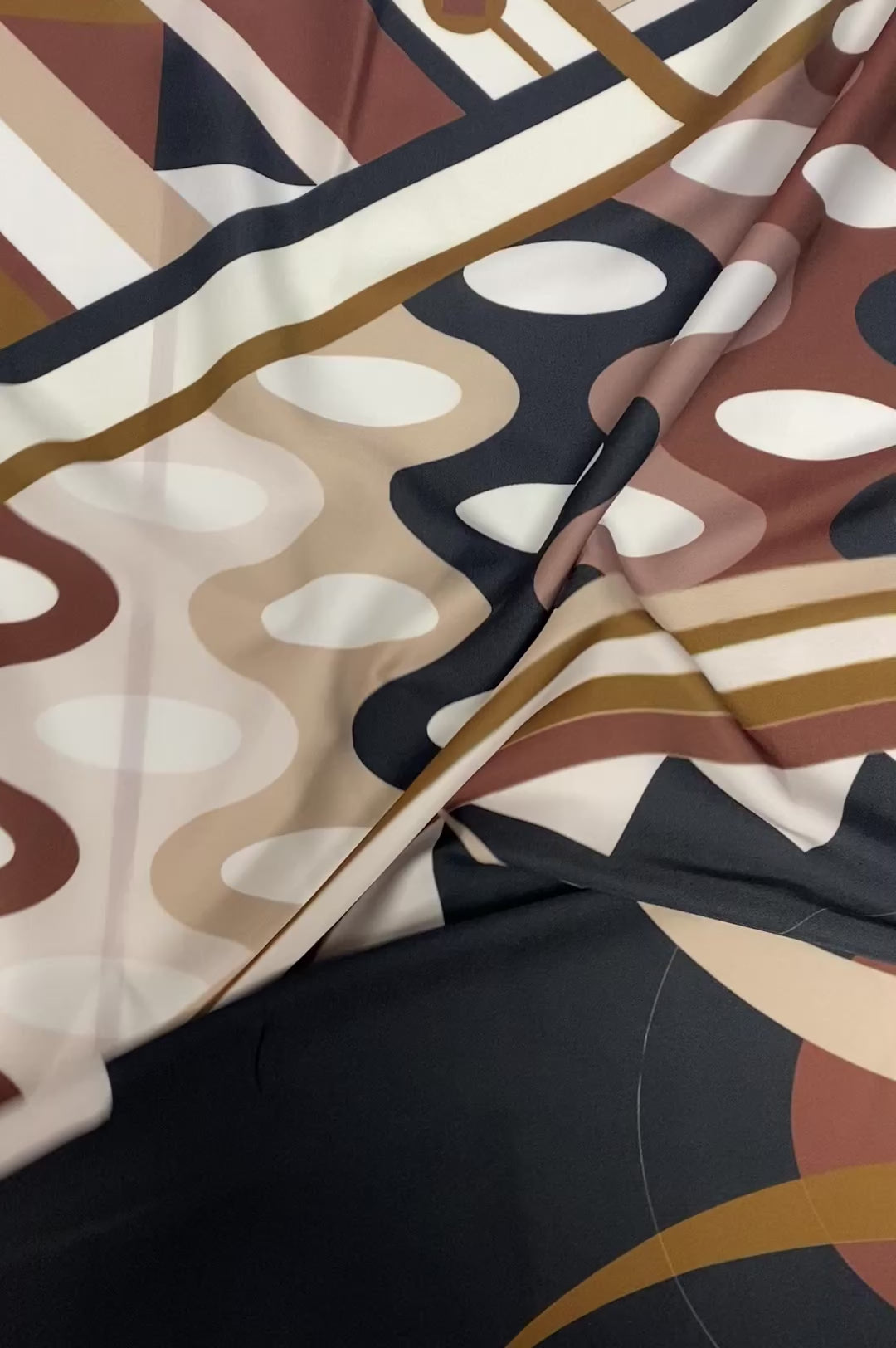 Stylish Art Deco geometric fabric in brown, beige, and black. Ideal for elegant dresses or interior projects.
