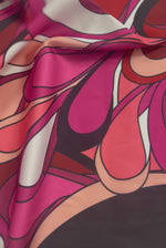 Eye-catching pink and red abstract petal swirl fabric. Perfect for bold fashion, scarves, and creative textile design.