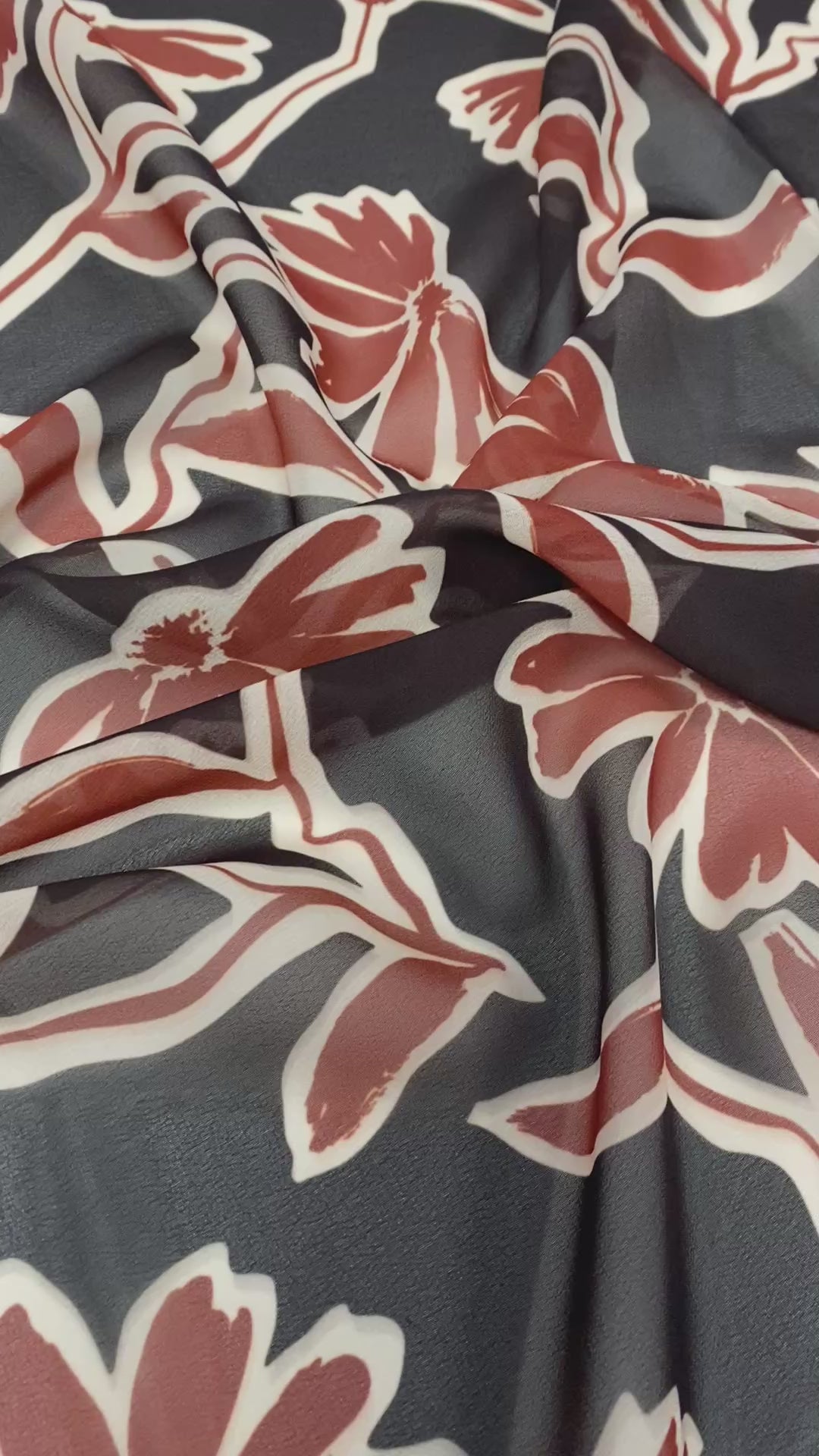 Discover our rust red floral print fabric on a black background. This beautiful fabric features a vibrant floral design that adds a touch of elegance to any project. Ideal for various sewing applications, it is perfect for creating dresses, home decor, and more. Enjoy the quality and style that this unique fabric brings to your creations.