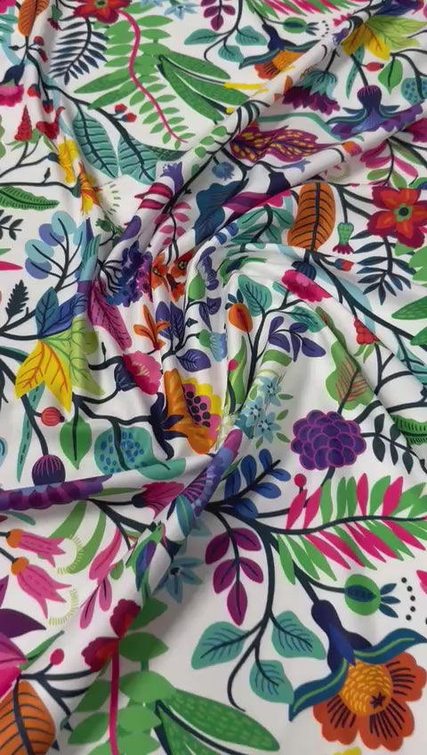 Bright multicolour floral fabric with bold, artistic blooms. Perfect for dresses, skirts, blouses, and creative sewing or home décor projects.