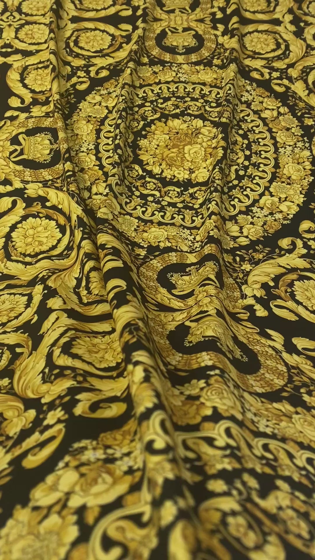 Discover our luxurious Baroque gold pattern fabric on a striking black background. This elegant fabric features intricate gold designs that add a touch of sophistication to any project. Ideal for upholstery, drapery, or fashion applications, it combines beauty and versatility for your creative needs.