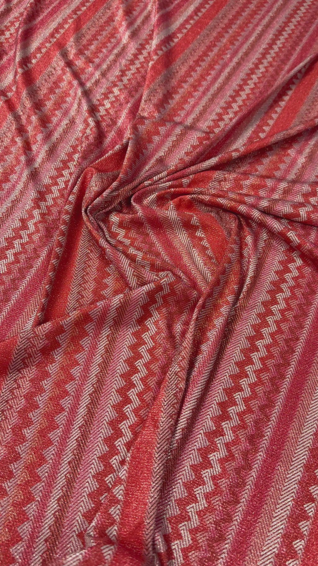 4-Way Stretch Pink Red Zigzag Knit Fabric with Lurex Accent