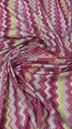 - Chevron knit textile with distinctive zigzag pattern fabric adds unique visual interest
