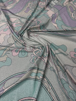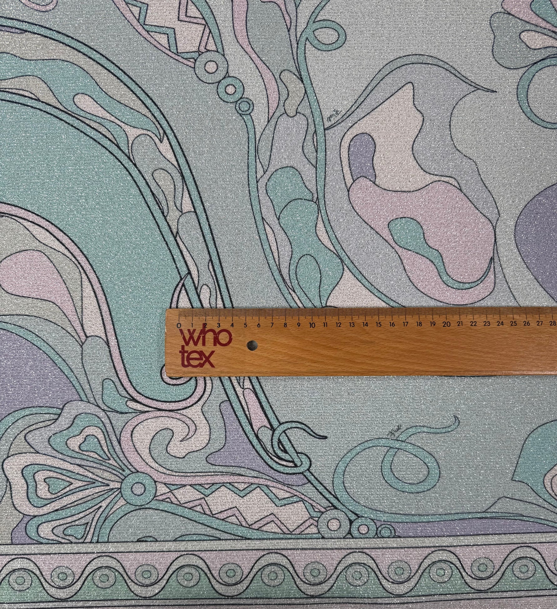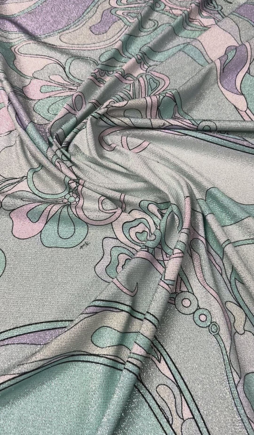 Lightweight lurex fabric with flowing abstract design in soft pastel tones. Features a gentle shimmer and smooth handle, ideal for dresses, blouses and statement sewing projects. Elegant drape and refined sparkle. Sold by the Metre.