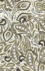 Elegant paisley fabric in beige and cream shades. Soft texture and timeless pattern, ideal for dresses, shirts, or chic home decor. Sold by the metre.