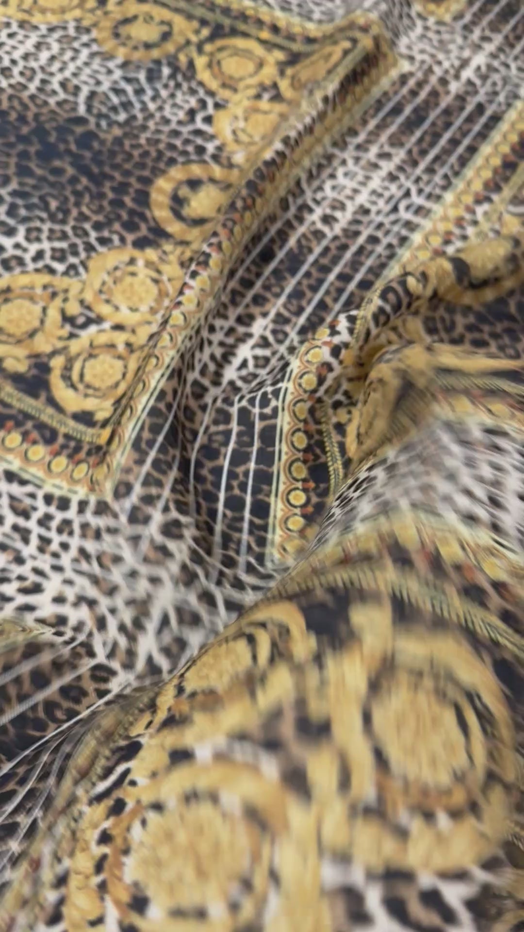 Leopard Gold Baroque Patterned Crepe Fabric – Custom Printed Fabric, Choose Material by Metre