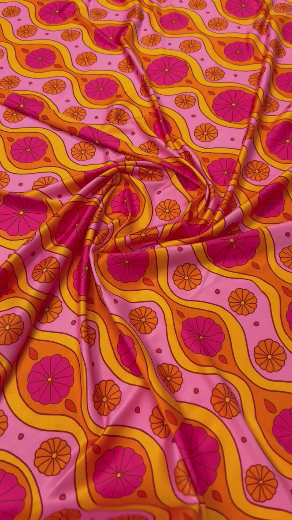 Pink Geometric Pattern Floral Fabric – Fabric by Metre, Options: Satin, Crepe, Spandex, Chiffon