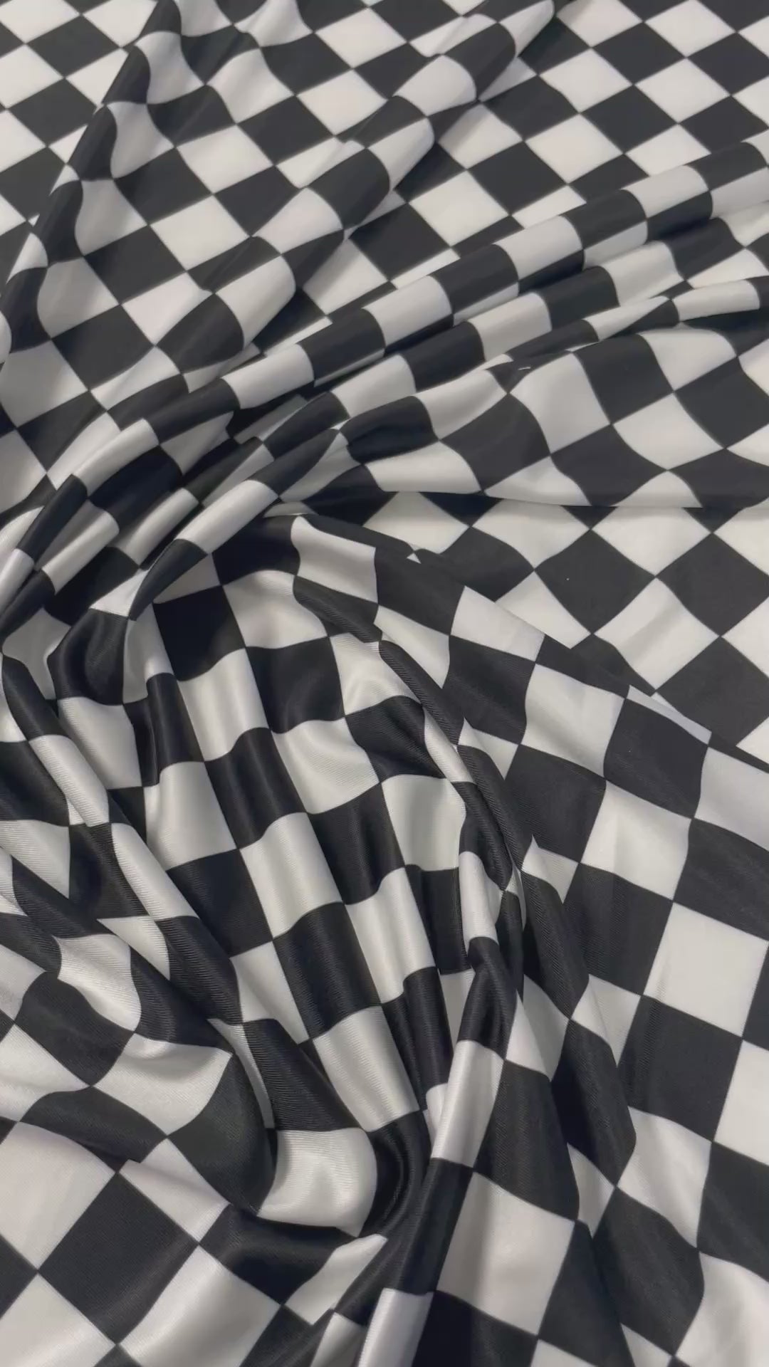 Classic black and white checkerboard fabric. Perfect for dresses, shirts, costumes, crafts and bold fashion projects. Sold by the metre.