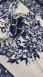 Blue & White Tile Print Crepe Fabric by the Metre – Classic Floral