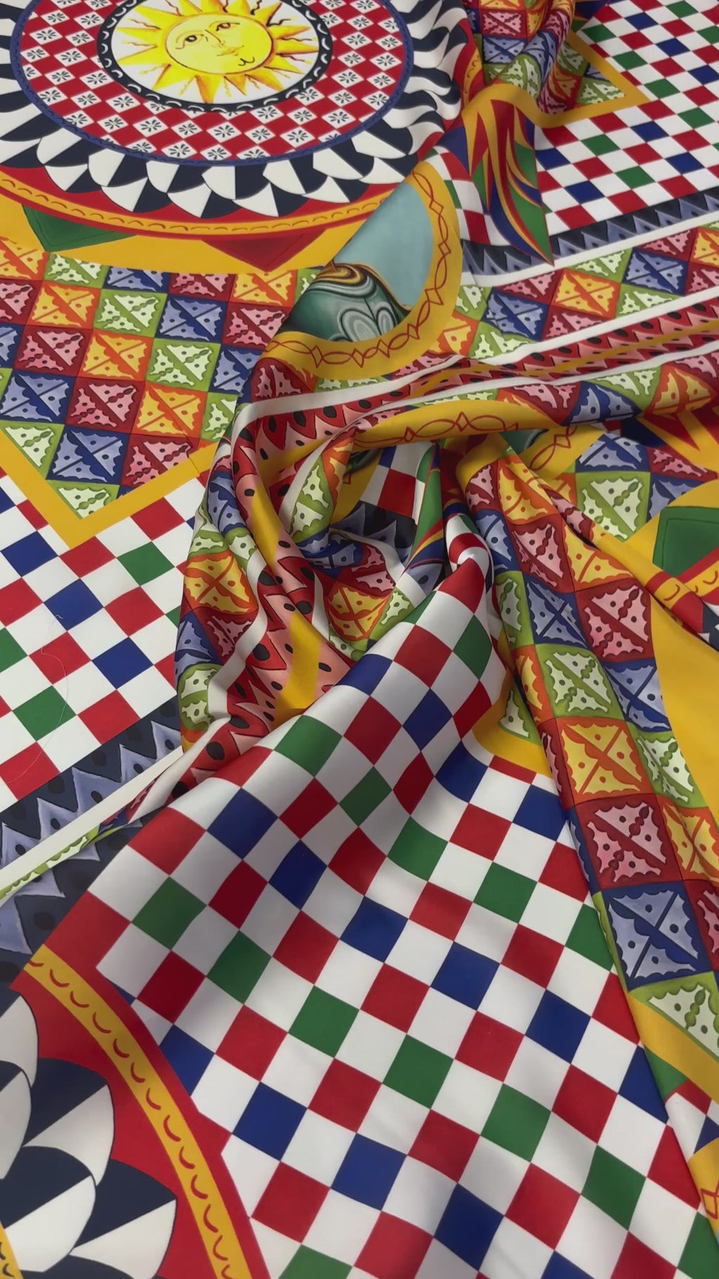 Colorful Chiffon Satin Fabric by the Metre – Mediterranean Geometric Warrior