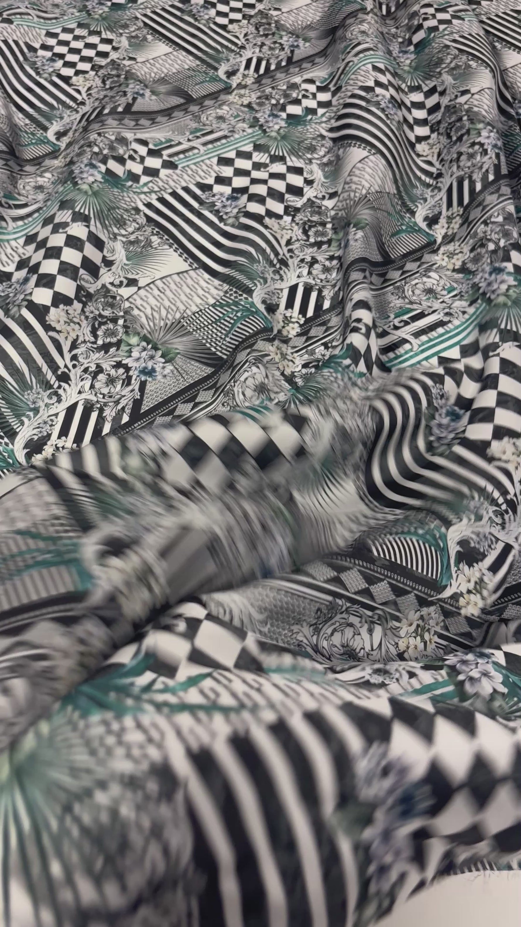 Geometric Floral Chiffon Satin Fabric by the Metre – Black & White Luxury