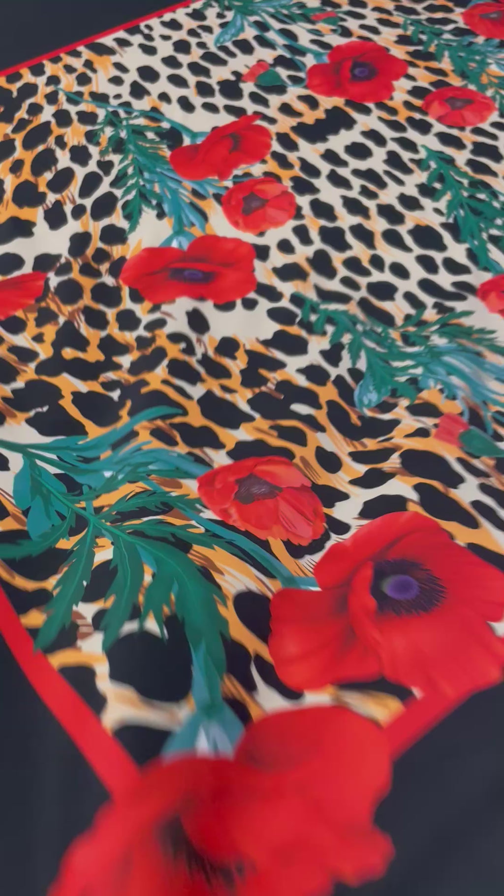 Leopard & Red Poppy Crepe Fabric by the Metre – Bold Design