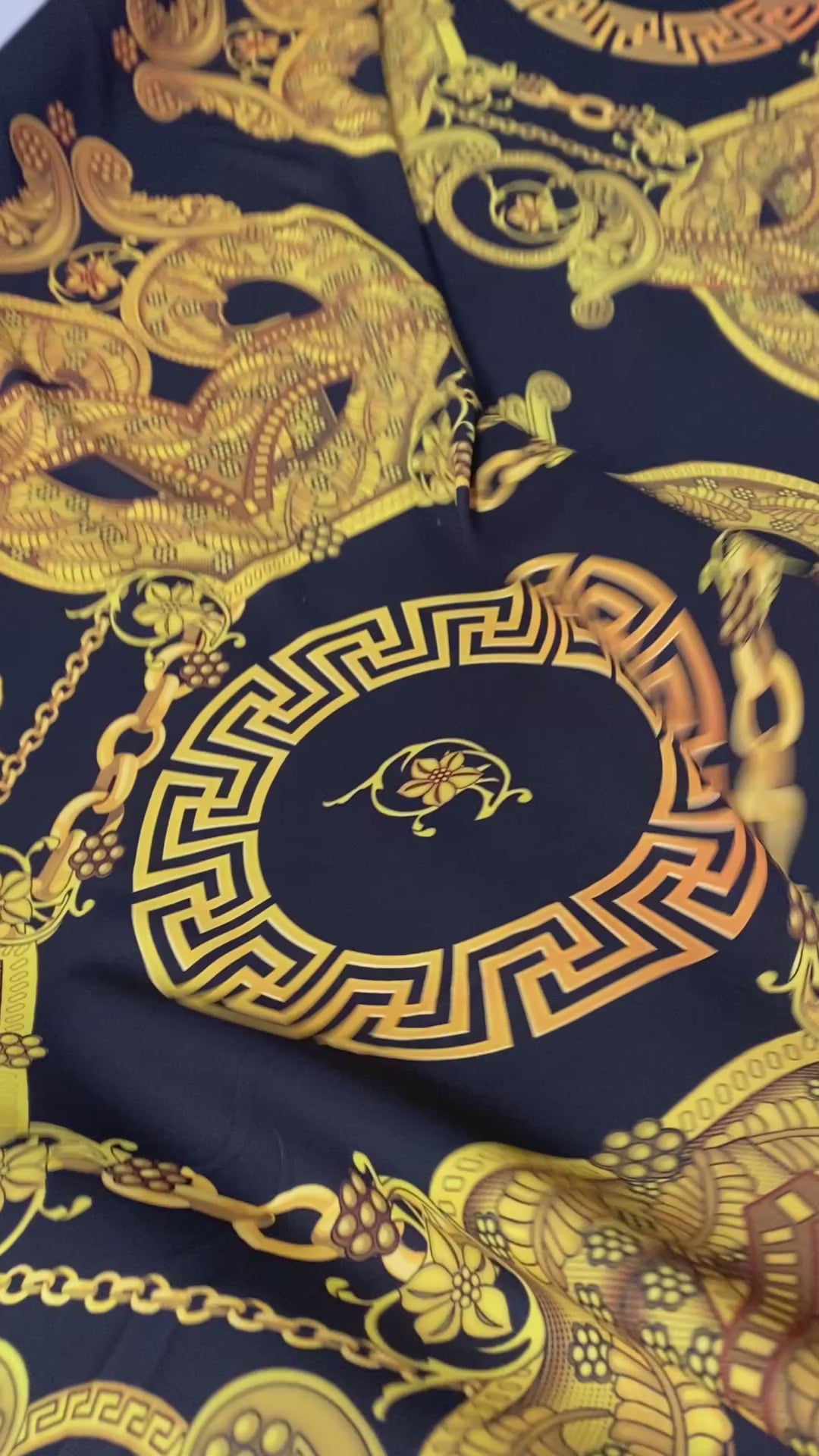 Luxury Baroque Chain Crepe Fabric by the Metre – Black & Gold Ornate