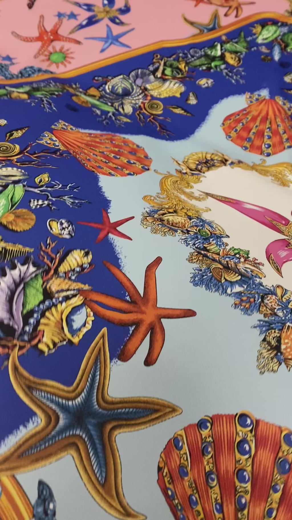 Luxury Crepe Fabric by the Metre – Starfish & Seashell Print