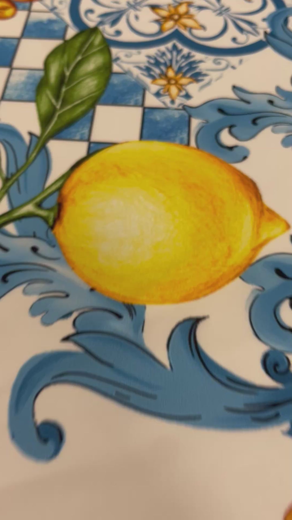 Mediterranean Lemon & Tile Print Crepe Fabric by the Metre – Dressmaking