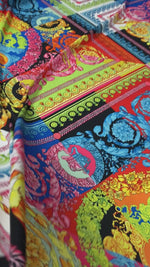Shop colourful crepe fabric with ornate baroque print by the metre. Perfect for bold dresses, skirts, and crafts. Premium quality, vibrant & unique design.