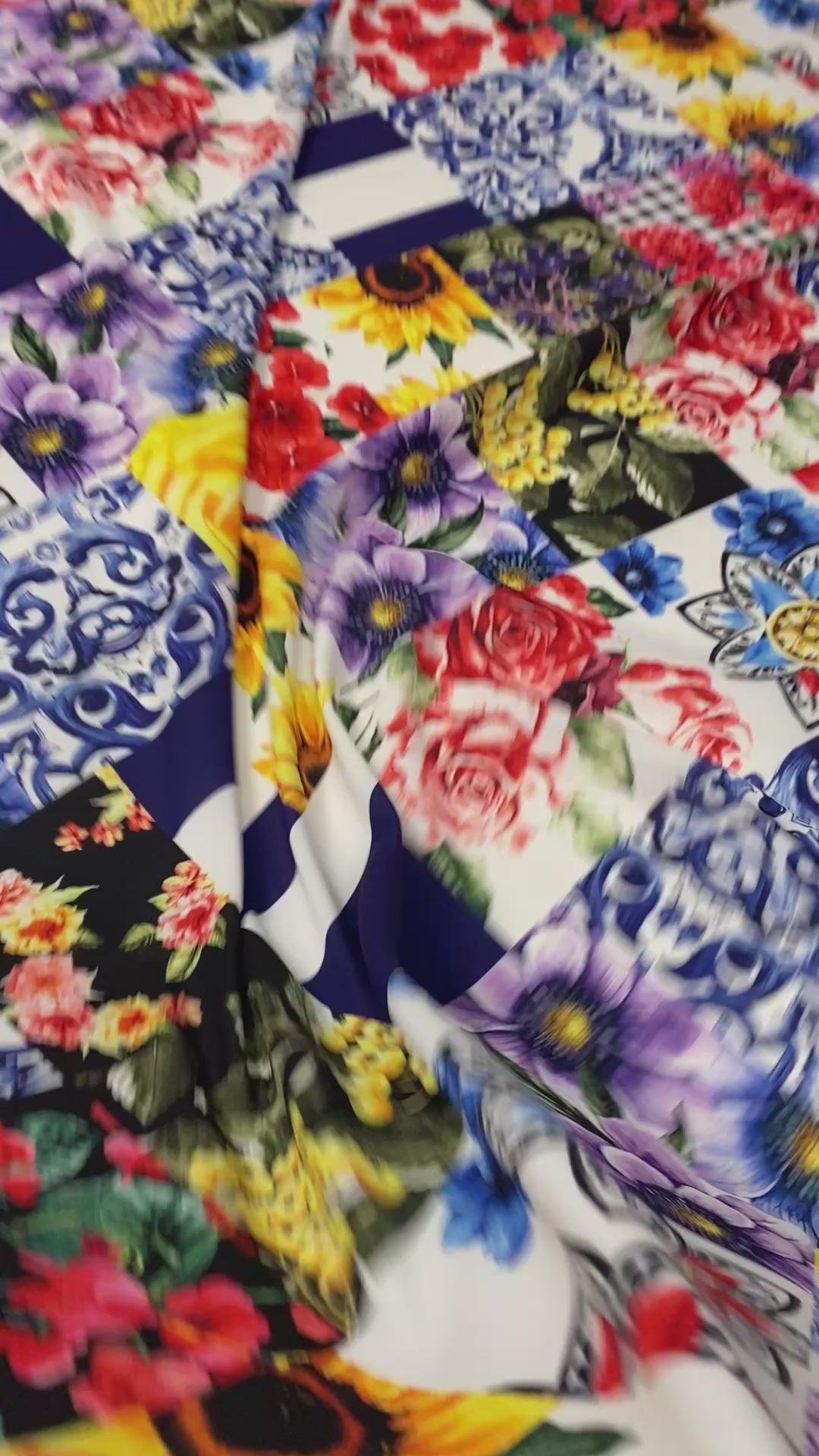 Patchwork Floral Crepe Fabric by the Metre – Colourful & Unique