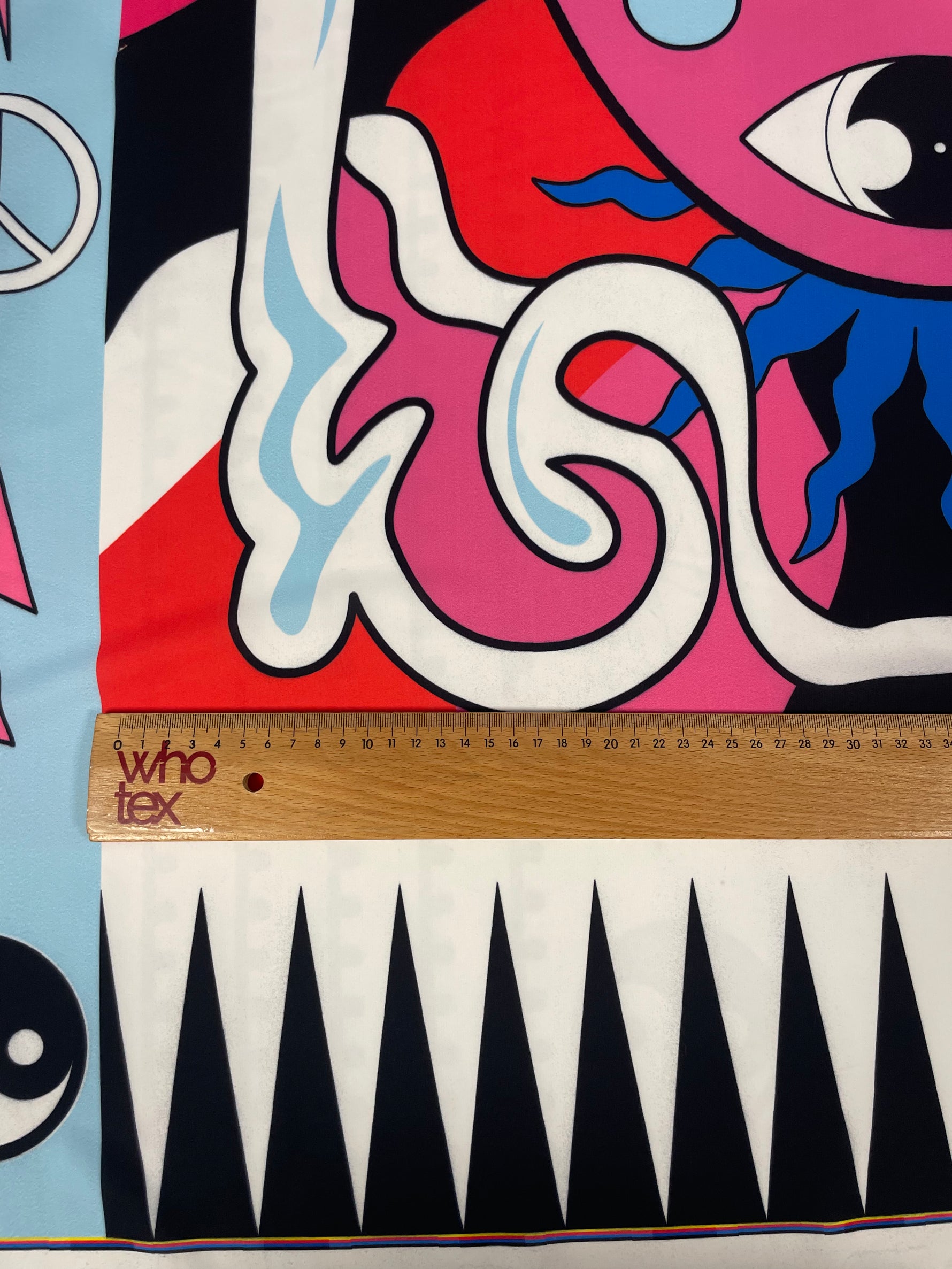 Psychedelic Eye & Sun Print Crepe Fabric by the Metre – Boho Dressmaking