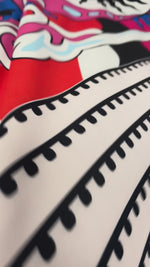 Psychedelic Eye & Sun Print Crepe Fabric by the Metre. Sold by the metre, ideal for dressmaking, blouses, skirts and elegant fashion projects.
