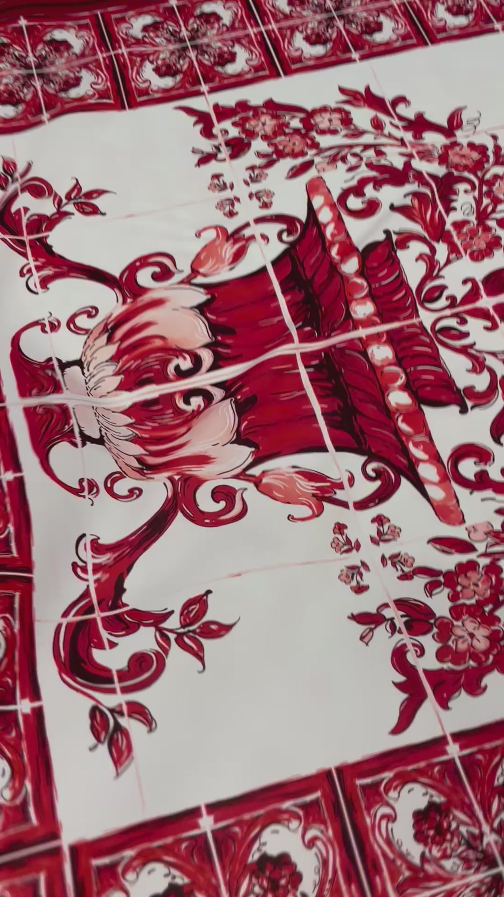 Red Baroque Floral Vase Crepe Fabric by the Metre – Mediterranean Style