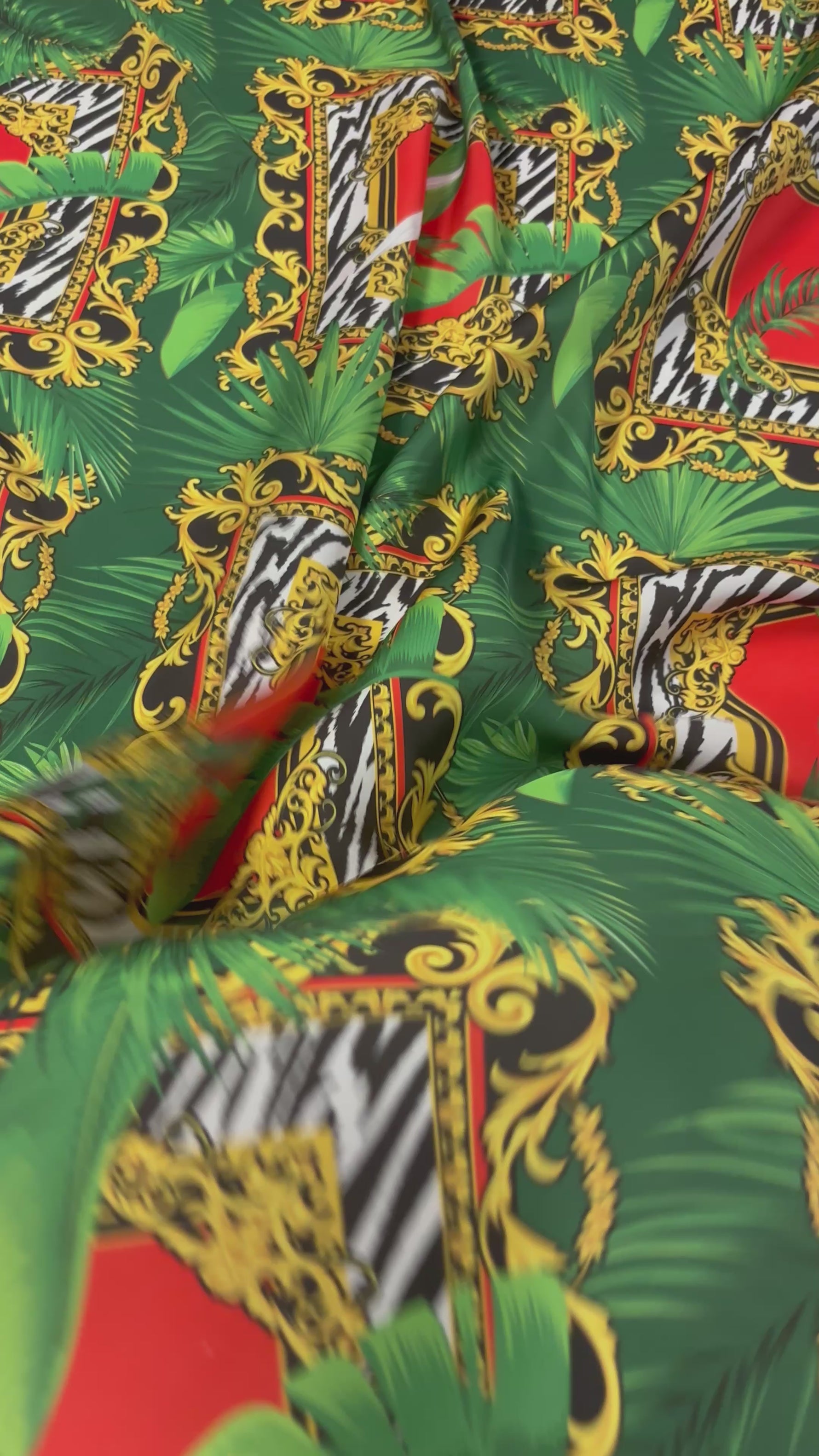 Tropical Baroque Zebra Print Chiffon Satin Fabric by the Metre. Sold by the metre, ideal for dressmaking, blouses, skirts and elegant fashion projects.