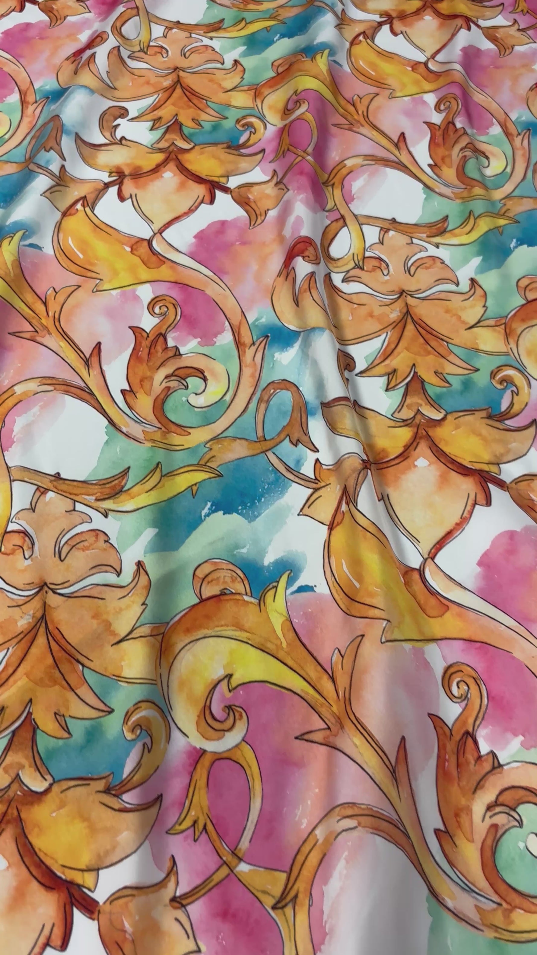 Watercolour Baroque Print Chiffon Satin Fabric by the Metre
