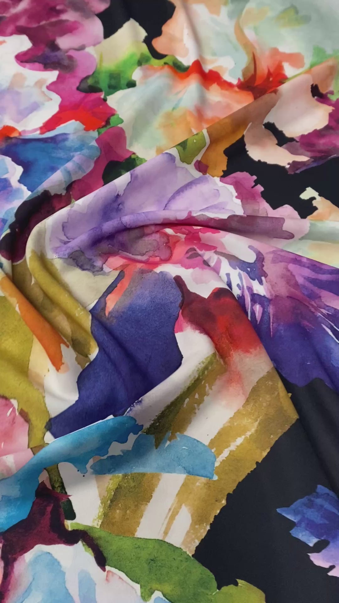 Watercolour Floral Crepe Fabric by the Metre. Sold by the metre, ideal for dressmaking, blouses, skirts and elegant fashion projects.