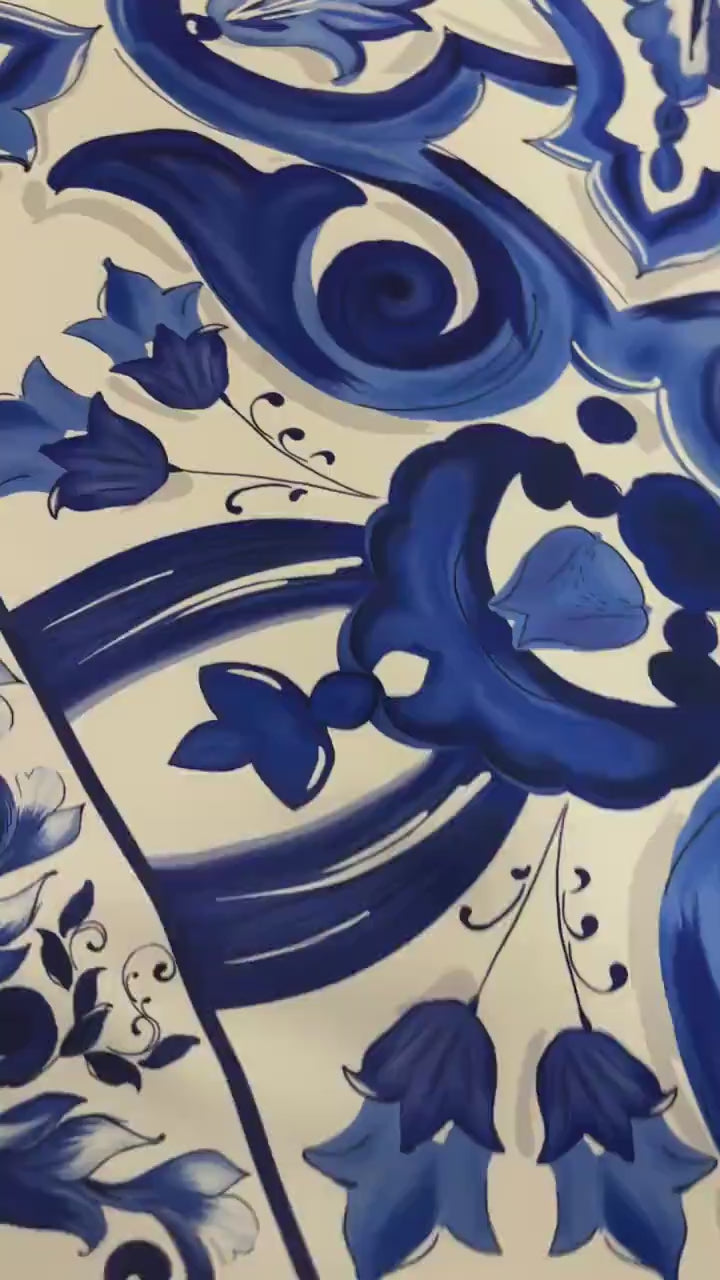 Blue Big Majolica Pattern Fabric – Multiple Fabric Options, Sold by Metre