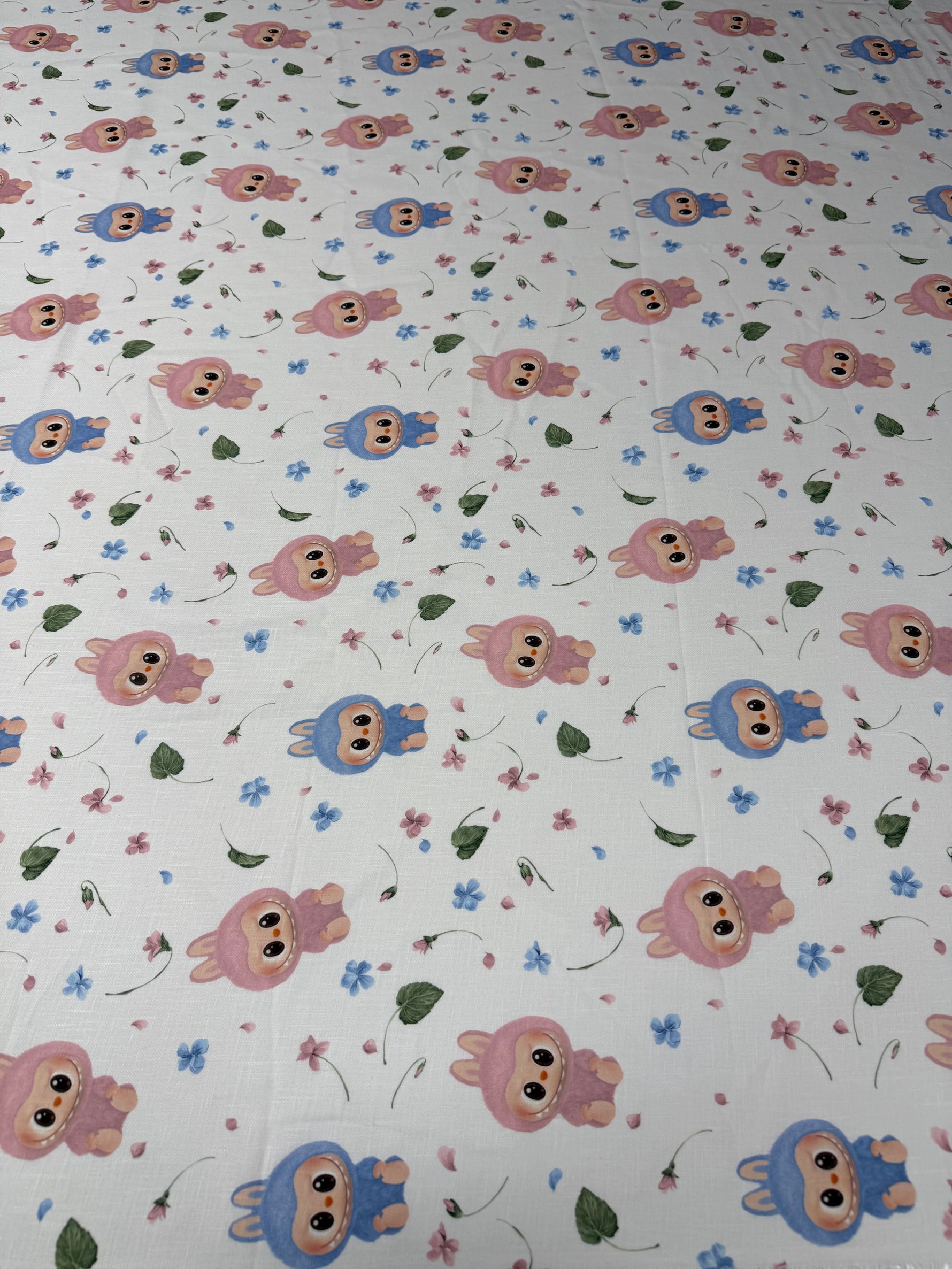 Adorable character-themed linen fabric with soft pastel florals. Ideal for children’s clothing, nursery décor, accessories and creative sewing projects. Sold by the Metre.