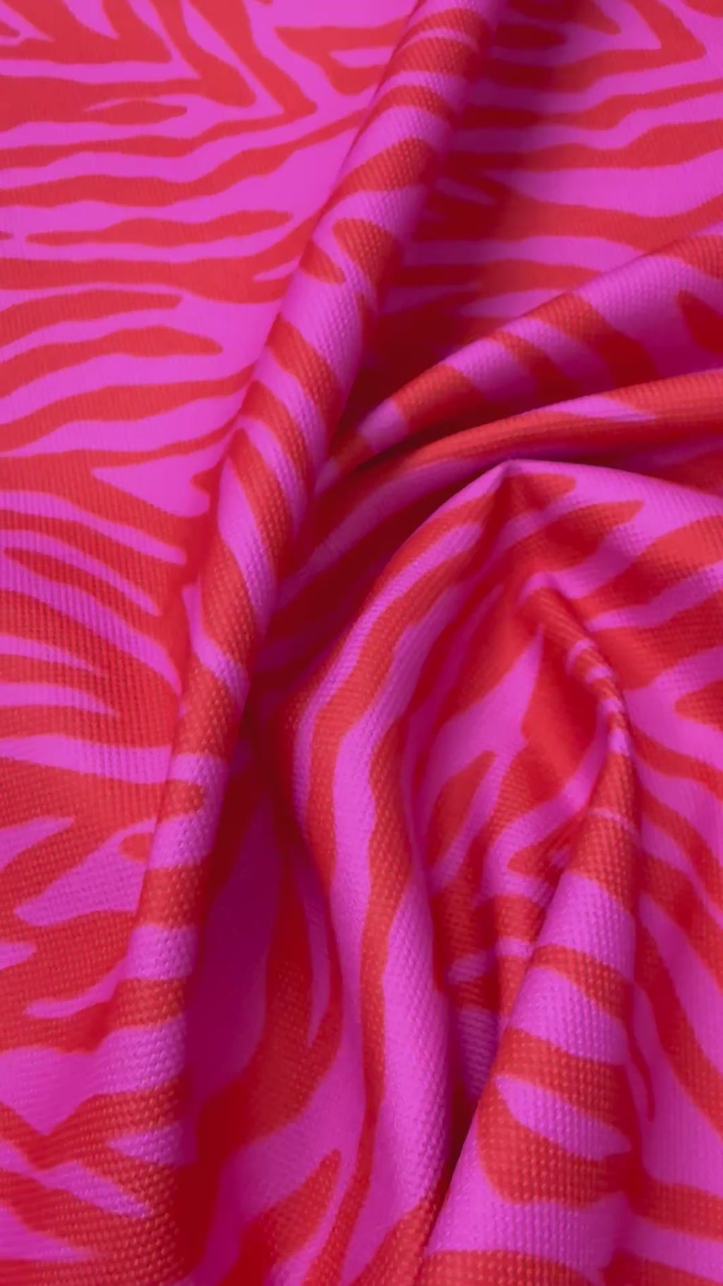 Vibrant pink and red zebra upholstery fabric with a bold, modern look. Ideal for chairs, cushions, headboards and standout interior décor projects. Durable and stylish. Sold by the metre.