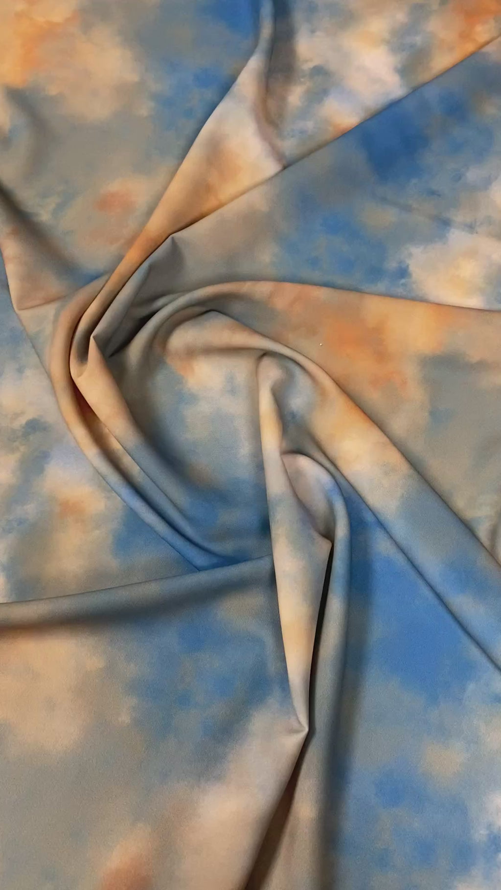 Abstract Cloud Print Crepe Fabric by the Metre – Blue Orange Beige