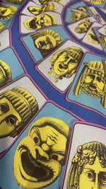Ancient Greek Mask Print Chiffon Satin Fabric by the Metre