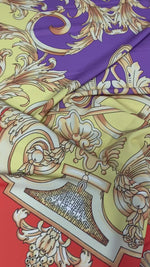 Discover our Baroque pattern fabric, featuring a vibrant orange border and elegant gold accents. This unique fabric adds a touch of sophistication to any project, making it perfect for upholstery, drapery, or crafting. Its intricate design and rich colors will enhance your decor and creativity.