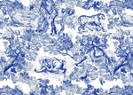 Blue Toile de Jouy Animals Organic Cotton Poplin Fabric by the Metre