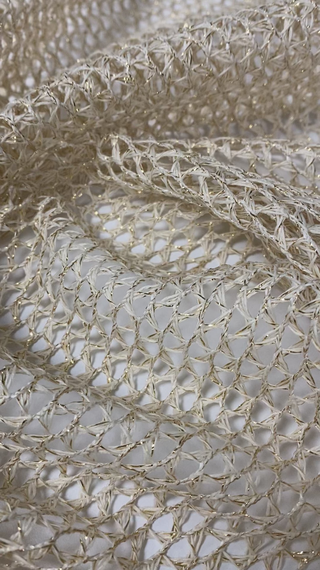 Embrace the possibilities with this captivating gold mesh fabric, perfect for both stylish apparel and creative crafts.