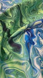 Durable upholstery fabric with a vibrant green and blue marble-style abstract pattern. Ideal for chairs, cushions, sofas and modern interior décor projects. Sold by the metre.